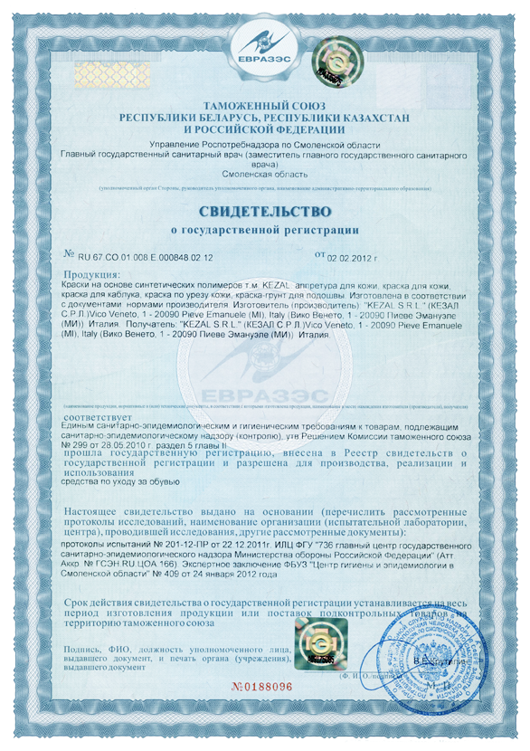 На данные группы товаров выдается свидетельство о государственной регистрации, которое не имеет срока действия и является действительным с момента выдачи до прекращения поставок или производства продукции на всей территории таможенного союза (Россия, Белоруссия, Казахстан)
